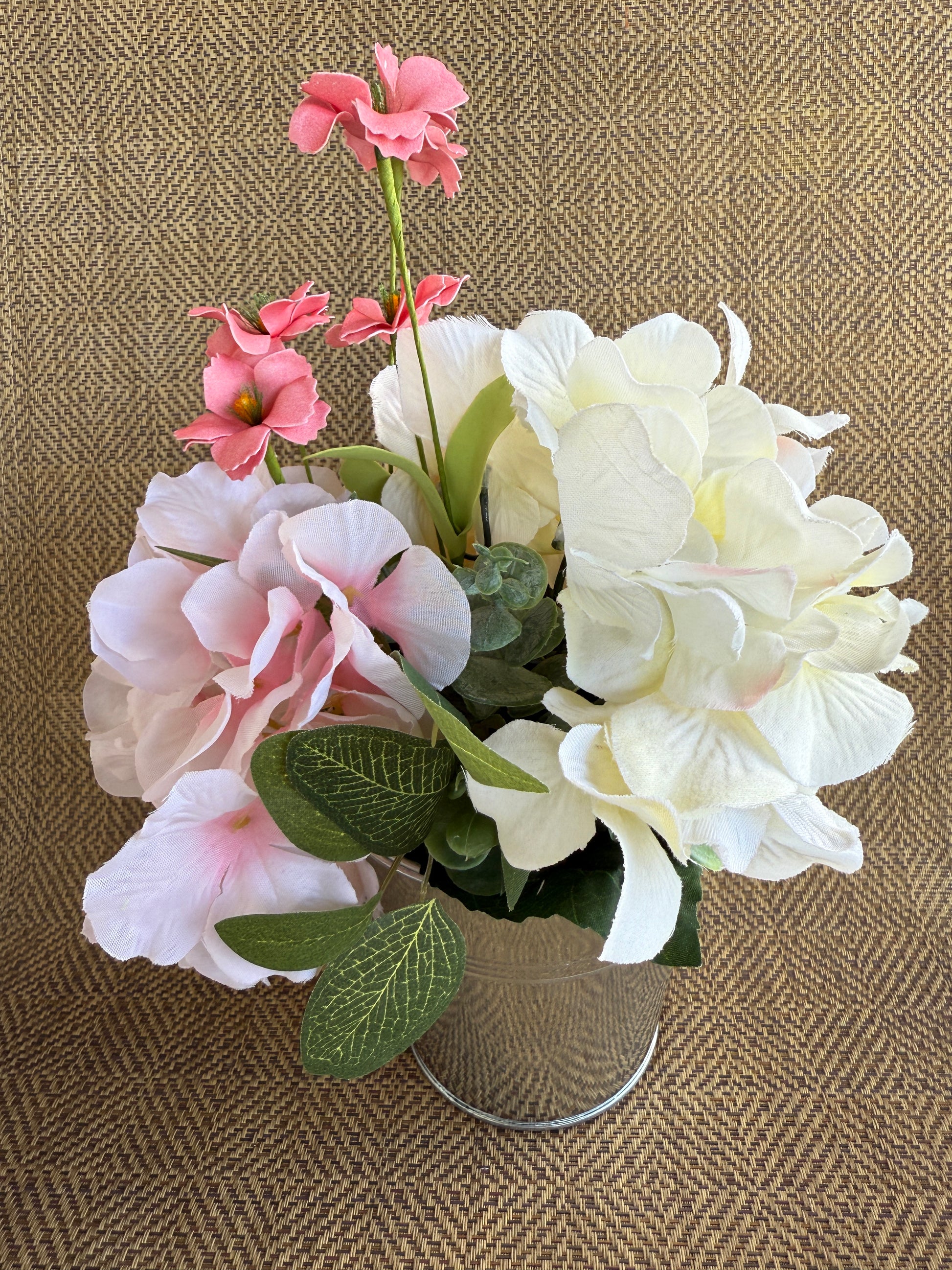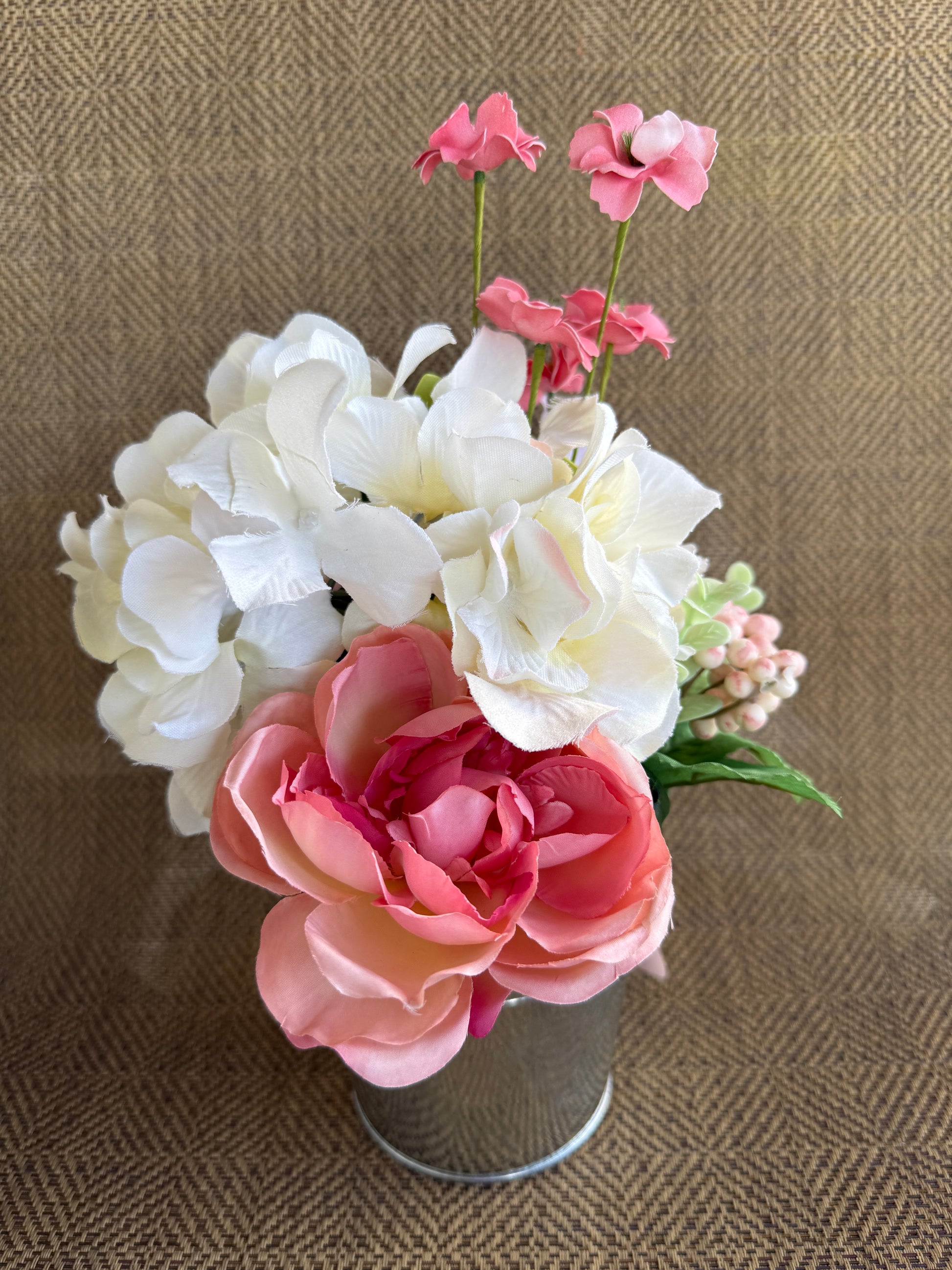 Simple elegance describes this smaller arrangement. Great for centerpieces or accent pieces at your venue, or as an "I'm thinking of you" gift!