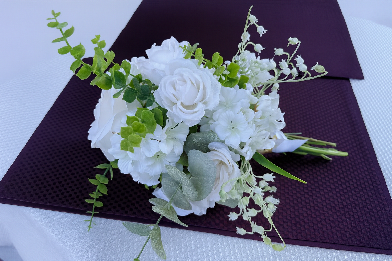 This elegant white bouquet matches any color scheme. It can be used: